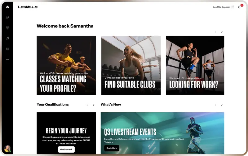 Les Mills Connectは、あなたのプロフィールを紹介したり、地元のクラブで教える機会を見つけたり、世界中のインストラクターネットワークと即座につながったりするのに役立つワンストップのデジタルプラットフォームです。